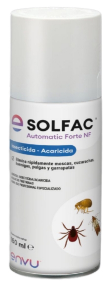 Solfac® Aerosol Forte es un aerosol insecticida–acaricida en base a piretrinas naturales, con un destacado efecto knock-down y eficacia frente a moscas, cucarachas, hormigas, pulgas, garrapatas e insectos alimentarios en instalaciones ganaderas y anejos.