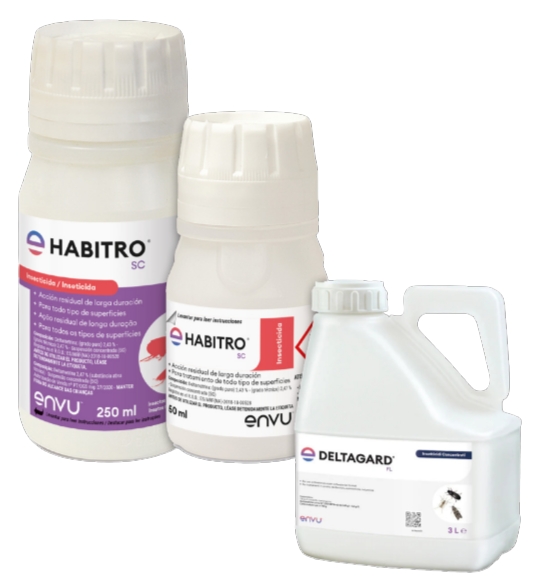 Para zonas donde se requiere persistencia y control duradero, Habitro® SC y Deltagard® FL (ambos en base a deltametrina) ofrecen suspensiones concentradas con hasta tres meses de efecto residual, según superficies y limpieza. ![]()