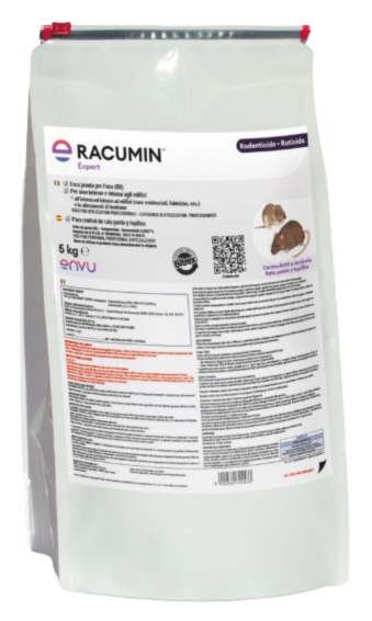 Racumin® Expert, formulado como pasta altamente atrayente, contiene cumatetralilo a 27 ppm, un anticoagulante multidosis que actúa tras ingestas repetidas durante un período de tiempo de 2 a 7 días. Sus principales ventajas son:
